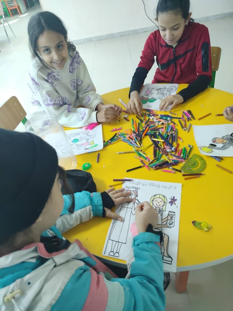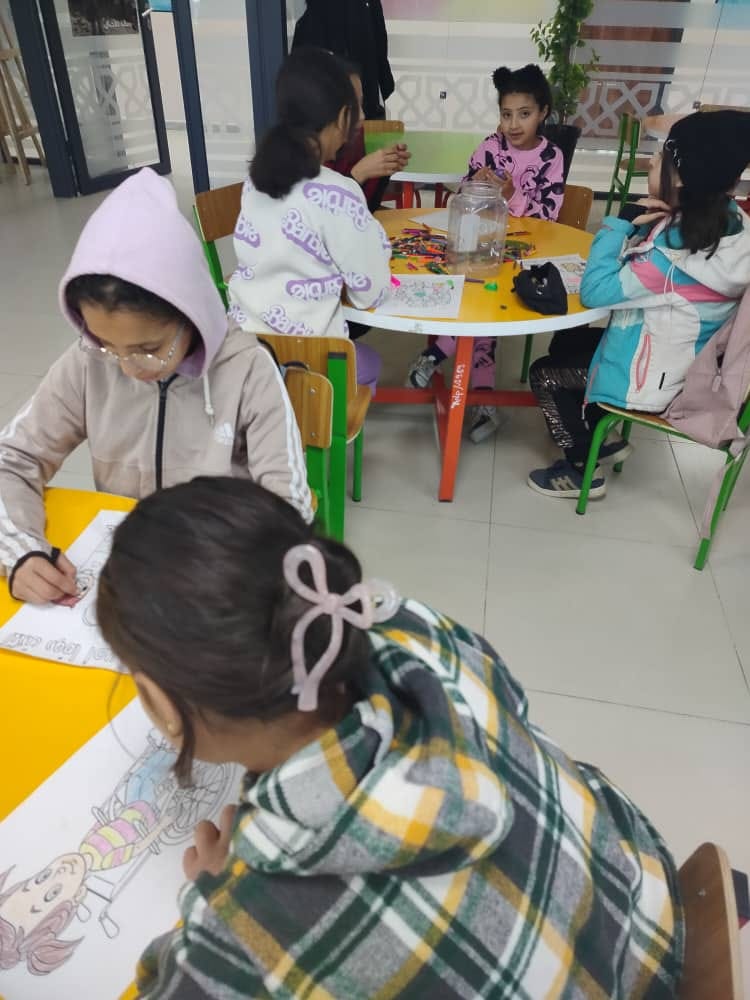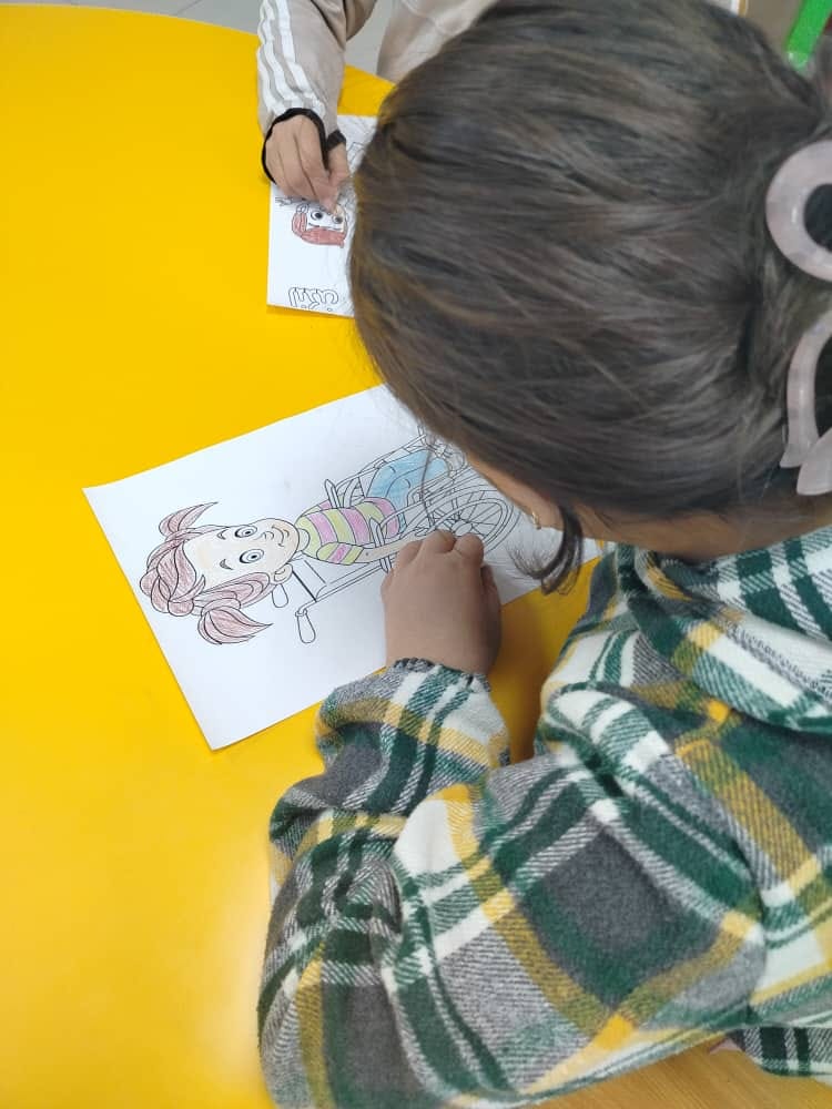 ركزت الورشة بشكل حصري على الرسم والتلوين التوعوي: • الرسم والتلوين التوعوي: حيث ركز الأطفال على إنجاز لوحات فنية تعكس قيمة الصداقة والاندماج مع أقرانهم من ذوي الهمم، واستخدام الألوان كوسيلة للتعبير عن الدعم والاحتواء.
