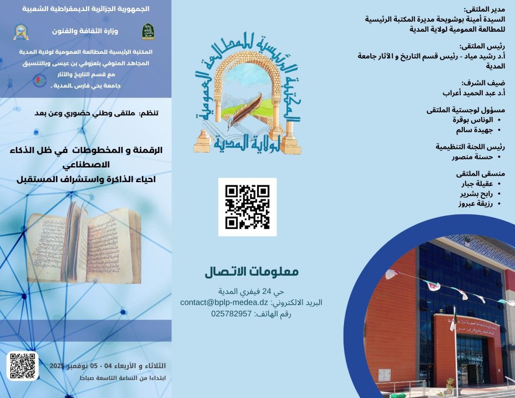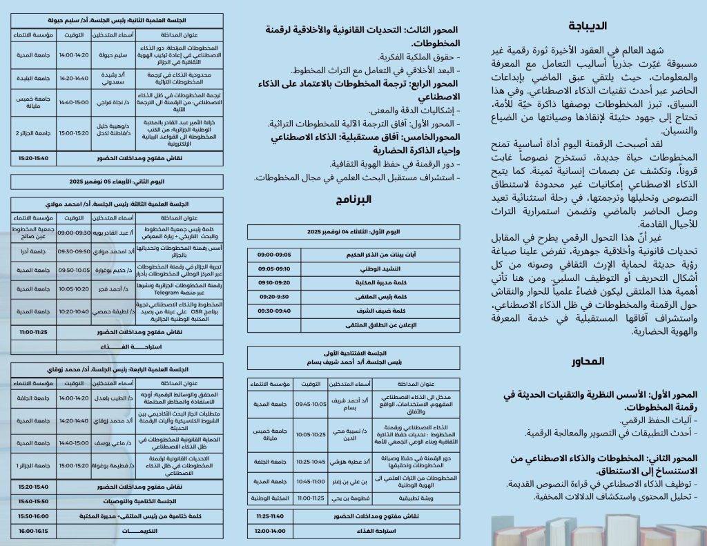 الملتقى الوطني: الرقمنة و المخطوطات في ظل الذكاء الاصطناعي احياء الذاكرة واستشراف المستقبل
